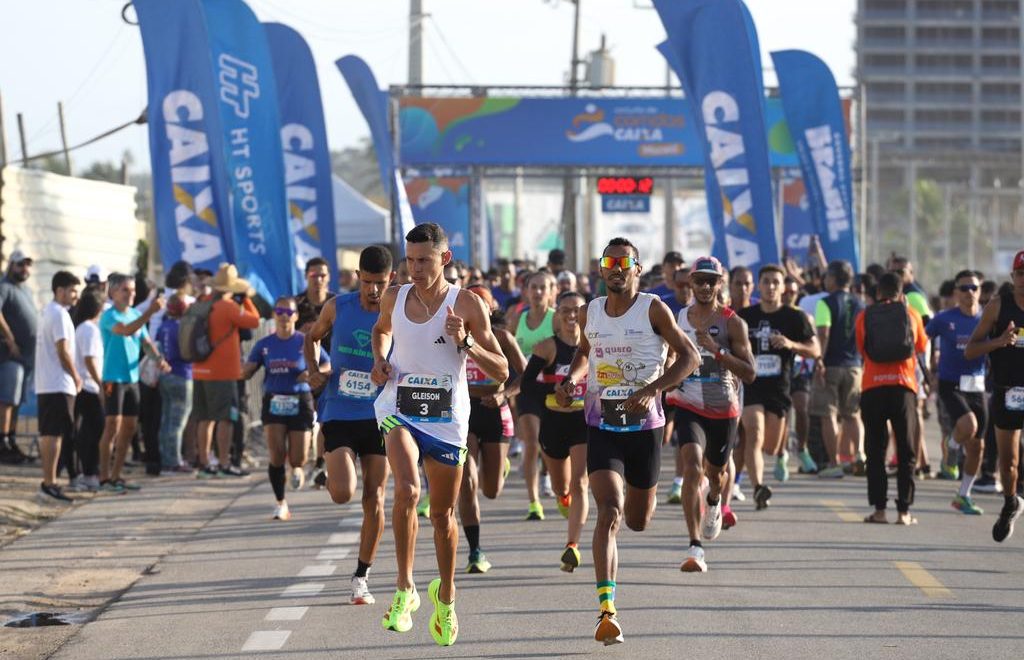 Largada da etapa João Pessoa (Foto: Luiz Doro / @dorofoto / HT Sports) Emanuel Santos ainda não aprendeu a correr, mas já tem duas dobradinhas no pódio do Circuito de Corridas CAIXA/Brazil Run Series 2025. O menino, de apenas nove meses de vida, acompanhou os pais na premiação da etapa de Maceió e, novamente, neste domingo (21), em João Pessoa, na terceira prova da série de corridas de rua mais tradicional do Brasil. No colo de Gleison da Silva Santos e Rosem Mayara Vieira da Silva Santos, viu o pai e a mãe receberem as medalhas de campeão e vice,