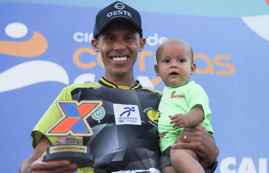 A etapa de Maceió do Circuito de Corridas CAIXA/Brazil Run Series, realizada neste domingo (7), terminou com uma cena especial no pódio dos 10 km: o campeão Gleison da Silva Santos celebrou a vitória com o filho Emanuel, de apenas nove meses, e ao lado da esposa Rosem Mayara, que conquistou o terceiro lugar no feminino. Fotos: Fernanda Paradizo / HT Sports Especialista na distância, Gleison, atual campeão dos 10.000 m no Troféu Brasil de Atletismo, abriu vantagem logo no início da prova e venceu com o tempo de 31min19. “O Circuito CAIXA é sempre especial, muito bem organizado e
