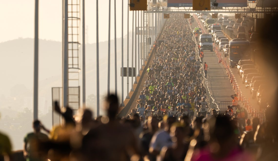 Corredores cruzaram a icônica Ponte rio-Niterói (Foto: Pedro Macedo) Cerca de 5 mil corredores participaram da icônica travessia da Ponte Rio–Niterói em um domingo de paisagens deslumbrantes, disputas acirradas e celebração à beira da Baía de Guanabara. Depois de 12 anos fora do calendário, o Desafio da Ponte finalmente voltou neste domingo, 3 de agosto. Foram 21 km de prova, com largada no Caminho Niemeyer, em Niterói, e chegada na Praça Mauá, no Boulevard Olímpico, passando pelos 13,2 km da Ponte Rio–Niterói, uma travessia mítica para os corredores brasileiros num dos percursos mais simbólicos do país. O evento teve ao