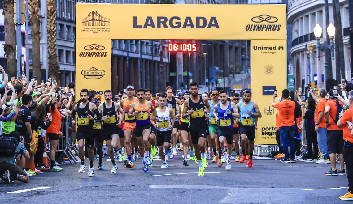 Largada da Meia do Mercado (Foto: Marcio Rodrigues/Foco Radical) A primeira edição da Meia Maratona do Mercado Público de Porto Alegre reuniu nes domingo (05/10) 5 mil corredores nas distâncias de 21 km, 10 km e 5 km. O grande destaque ficou para a chegada inédita no Mercado Público, em comemoração aos 156 anos do mais antigo centro de abastecimento do Brasil. Émerson Rosa foi o campeão da meia maratona com o tempo de 1h07min32. No feminino a vitória ficou com Jéssica Ladeira, que cruzou a linha em 1h18min55. Nos 10 km, os vencedores foram José Soares, com 36min24, e
